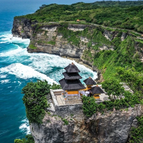 Top 10 kuil di Bali terletak di tebing laut di Kuta Selatan.