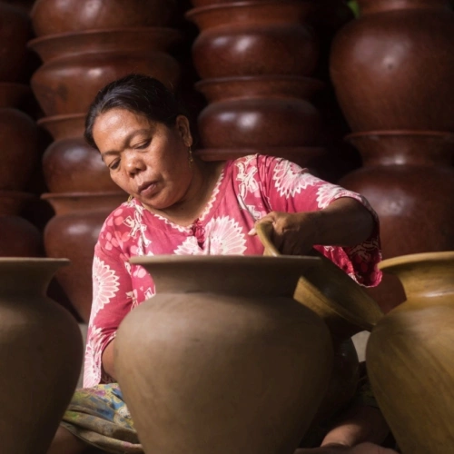 Lihat proses kraftangan orang Sasak sebelum dieksport.